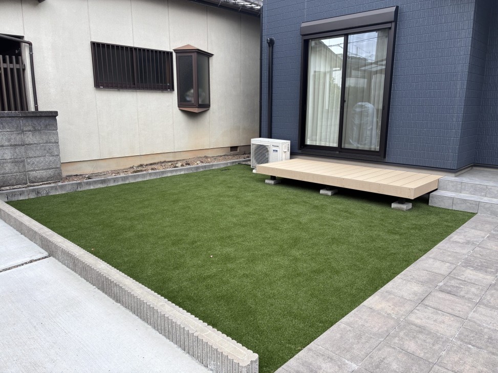 HOME - 施工実績 - リフォーム - 人工芝工事 施工実績Case アイムホームが叶えるあなたがのぞむ住まい PICK UP 人工芝工事 リフォーム 人工芝 防草シートを敷き、その上から人工芝を敷設 一覧に戻る 岐阜市内にある本社ショールームやエクステリア展示場で実物をご覧いただけます。