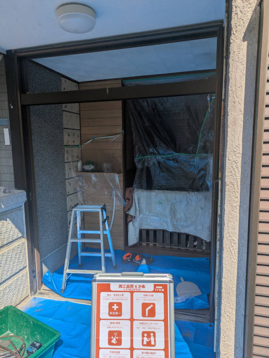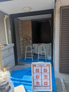ドア枠まわりの外壁を傷つける事がなく施工ができるので工事内容も少なく、お値打ちになります。